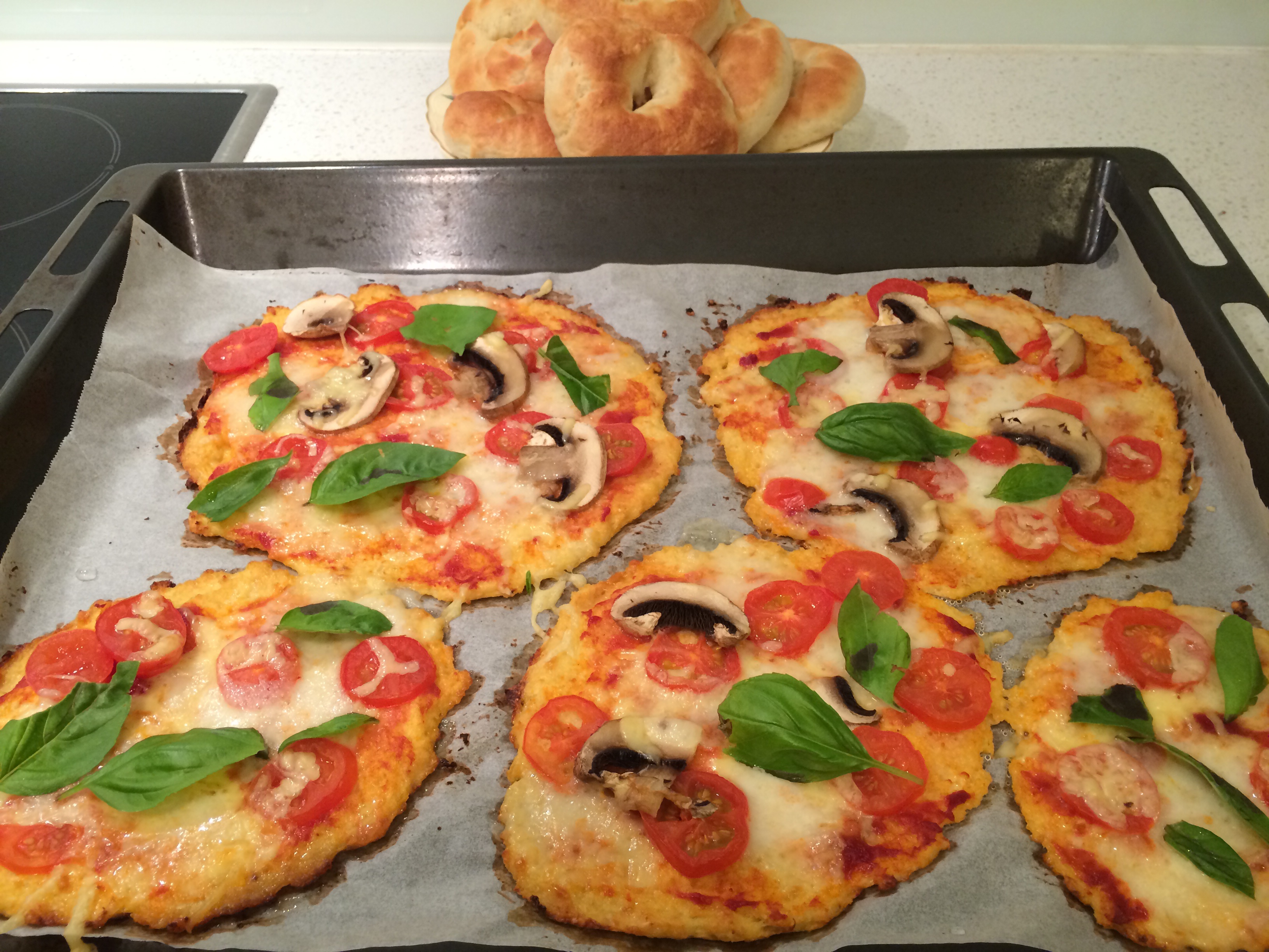 The pizza bases are made from cauliflower and parmesan and an egg, ticks the gluten free box but not dairy free. And the recipe is from the Something for Everyone cookbook. Not a huge hit tonight because the base was not as crispy as a flour pizza but some online research reveals the secret to these bases is squeezing the moisture from the cooked cauliflower before it is mixed with the cheese. Will try again with the recipe from the recipe community in which the cauliflower has moisture removed( link below) It’s great to see the favourable comments underneath the recipe proving it can work. And Sarah Wilson’s I Quit Sugar recipe (link also below ) has also received positive comments and she also notes the cauliflower is cooked and should be drained. It is the same recipe as in the Something for Everyone cookbook except she uses 20g more cheese in her base.