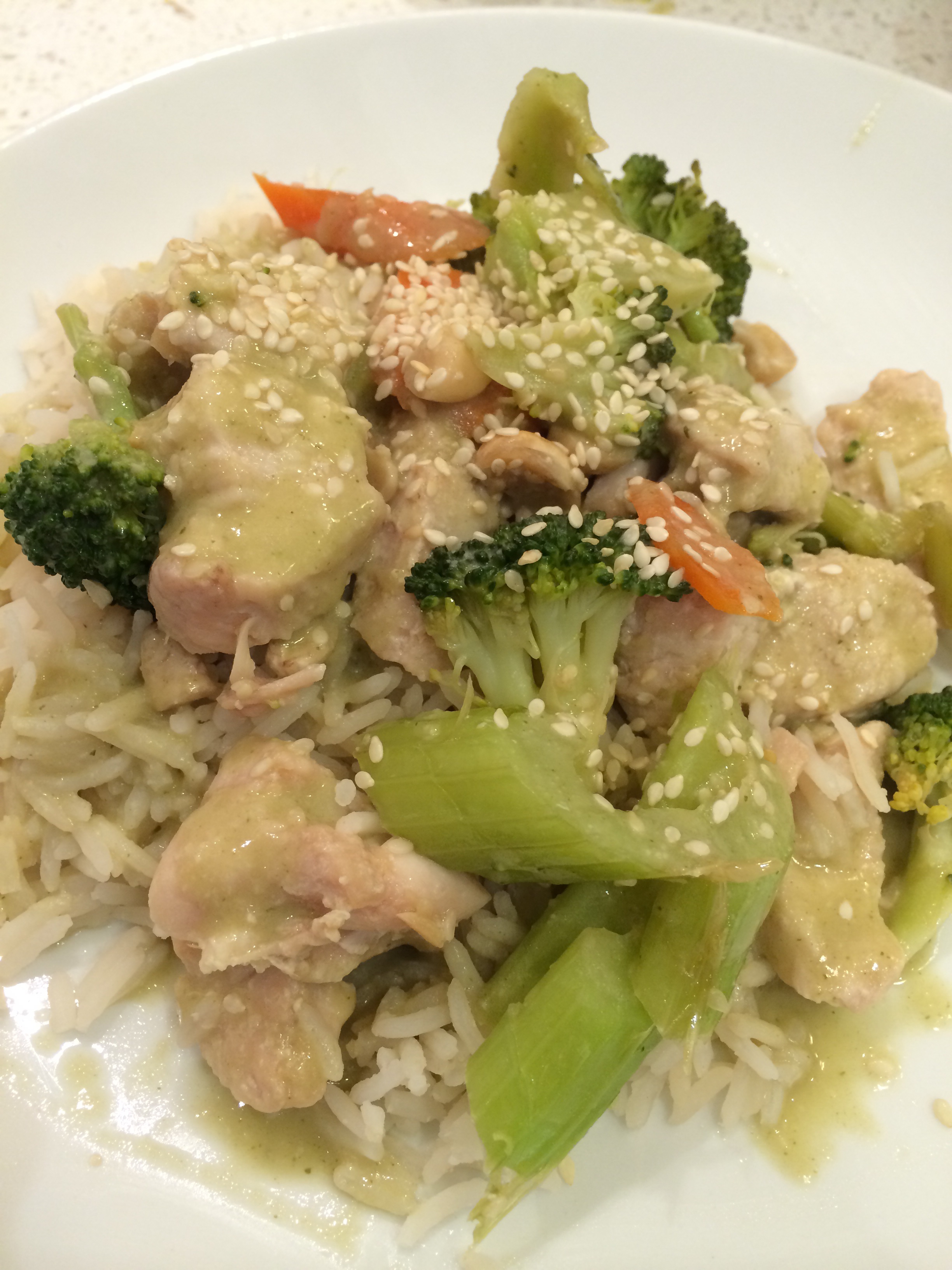 Quirky cooking’s recipe for Chicken and cashew nuts with coconut sauce and coconut rice is a clever all in one recipe that makes a great standard family meal.  Uses the Varoma to steam vegetables and chicken while the rice cooks in the bowl.  Sauce is made from the remaining coconut liquid in the bowl blended with extra herbs and nuts. Very yummy and enjoyed by us all. Would top with extra roasted cashews next time. Note: use basmati as it cooks quickly in the recipe  time and add the chicken stock to the sauce before the final cooking stage.