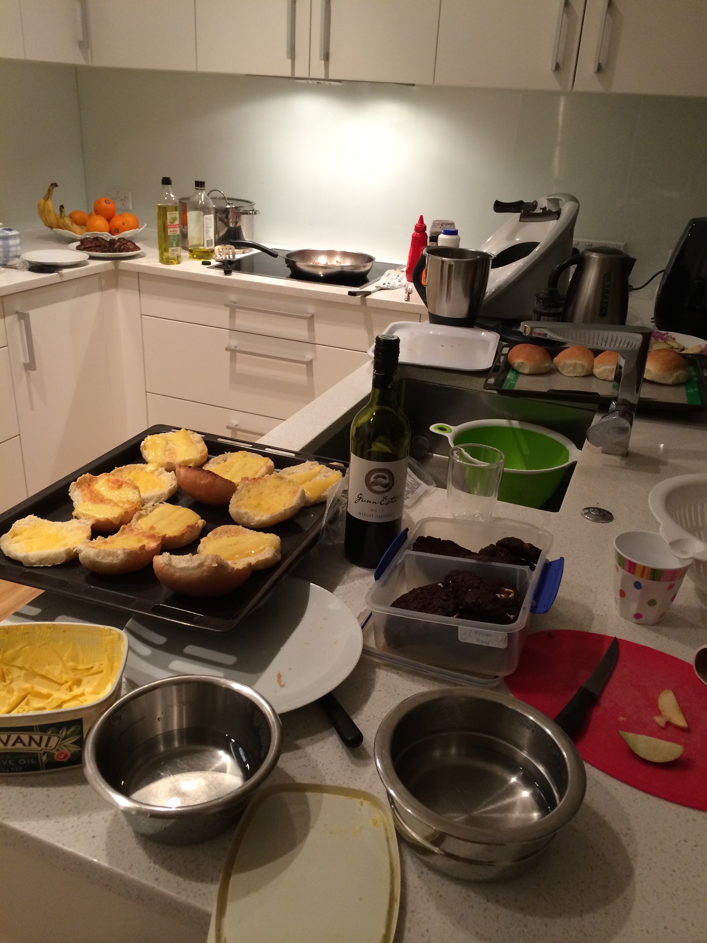 Haha..here’s our kitchen. Basically, a disaster zone. Thought about posting a nice picture of our Friday night homemade burgers but decided on a slice of real life! The kids are on school holidays, there’s a continual demand for food, activity, outings and lots of mess everywhere. By the end of the day, the kitchen bench is littered with dirty dishes, packets that hadn’t been put away, half eaten food and drinks. Miss 14 had made chocolate fudge biscuits earlier and lunch was probably somewhere in the midst of all that mess too. Lately we have had easy tmx meals that have been posted previously. Everyone is well fed but had no time to try any new recipes and have quite a few lined up to try. Can’t wait till next week.