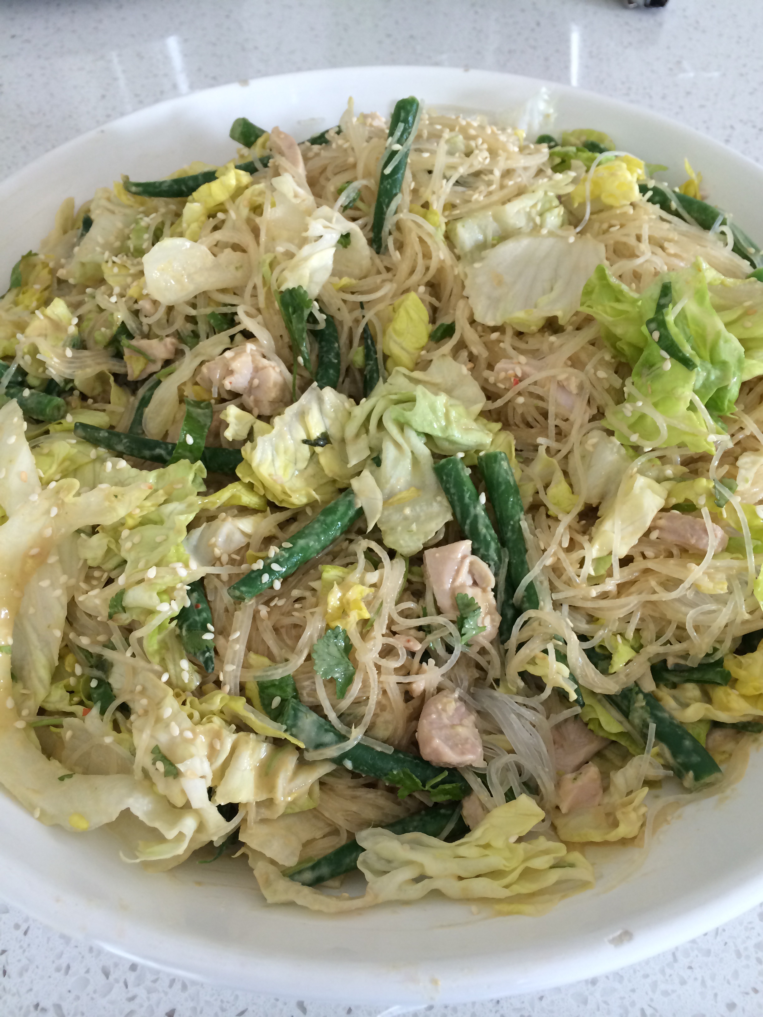We use thermomix for first half of the recipe from sautéing the onion garlic carrot and chicken . Then used the pan to stir fry all together with noodles and chinese cabbage because we upped the cabbage content slightly to over what would fit in the tmx. Reduced water content because we used rice noodles instead of vermicelli bean thread noodles. And precooked the rice noodles for a few minutes in boiling water . Easily one of my favourite all in one meals .